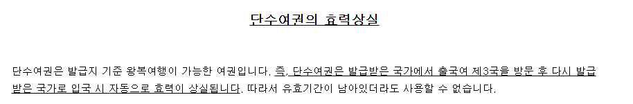 단수여권이란 유효기간이 1년으로, 그 기간 내에 한 번만 해외여행에 사용할 수 있는 여권을 의미합니다.