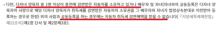 취득한 날짜가 아닌 등록한 날짜에 취등록세가 부과되니 만 18세 미만 자녀가 2명인 분은 올해부터 이용해 보시기 바랍니다.