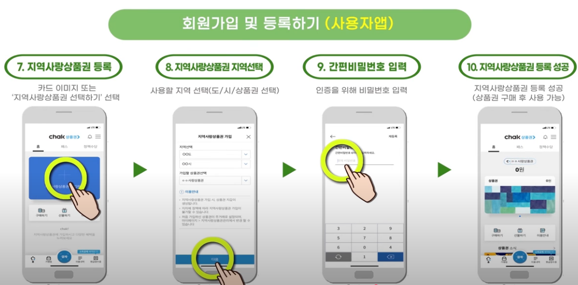 - 애플 앱스토어나 구글 플레이스토어에서 ‘지역상품권 CHAK’ 앱을 다운로드합니다.