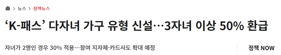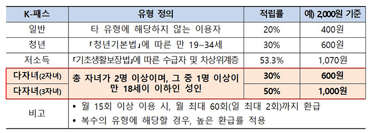 2025년부터 K패스에 다자녀 가구 혜택이 신설되었습니다.