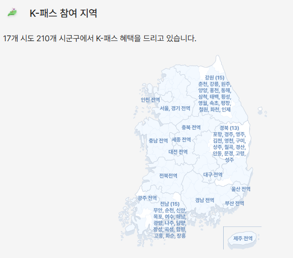 또한, 지역별 K패스 변형 버전으로 경기패스, 인천패스, 동백패스, 광주패스, 경남패스 등이 있으며, 이를 이용할 경우 추가 혜택도 받을 수 있습니다.