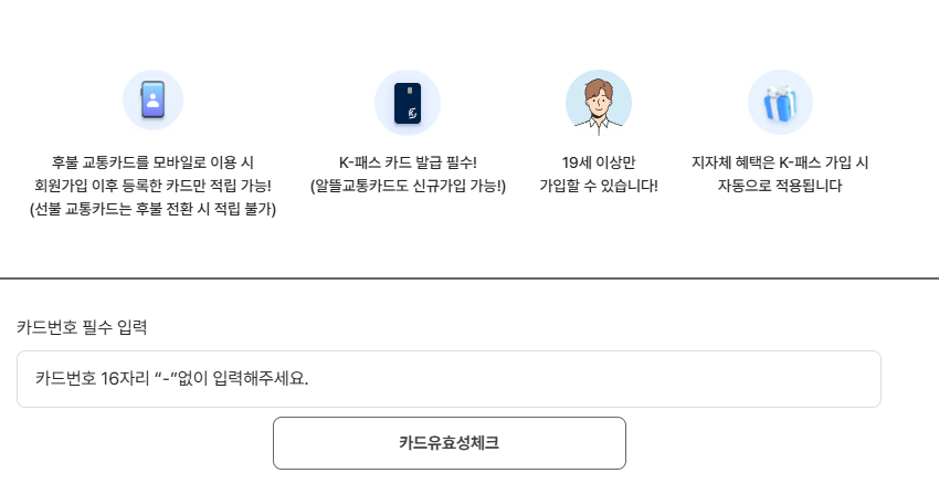카드를 발급받은 후 K패스 홈페이지에서 유효성 체크 및 등록을 해야만 혜택을 받을 수 있는데요,